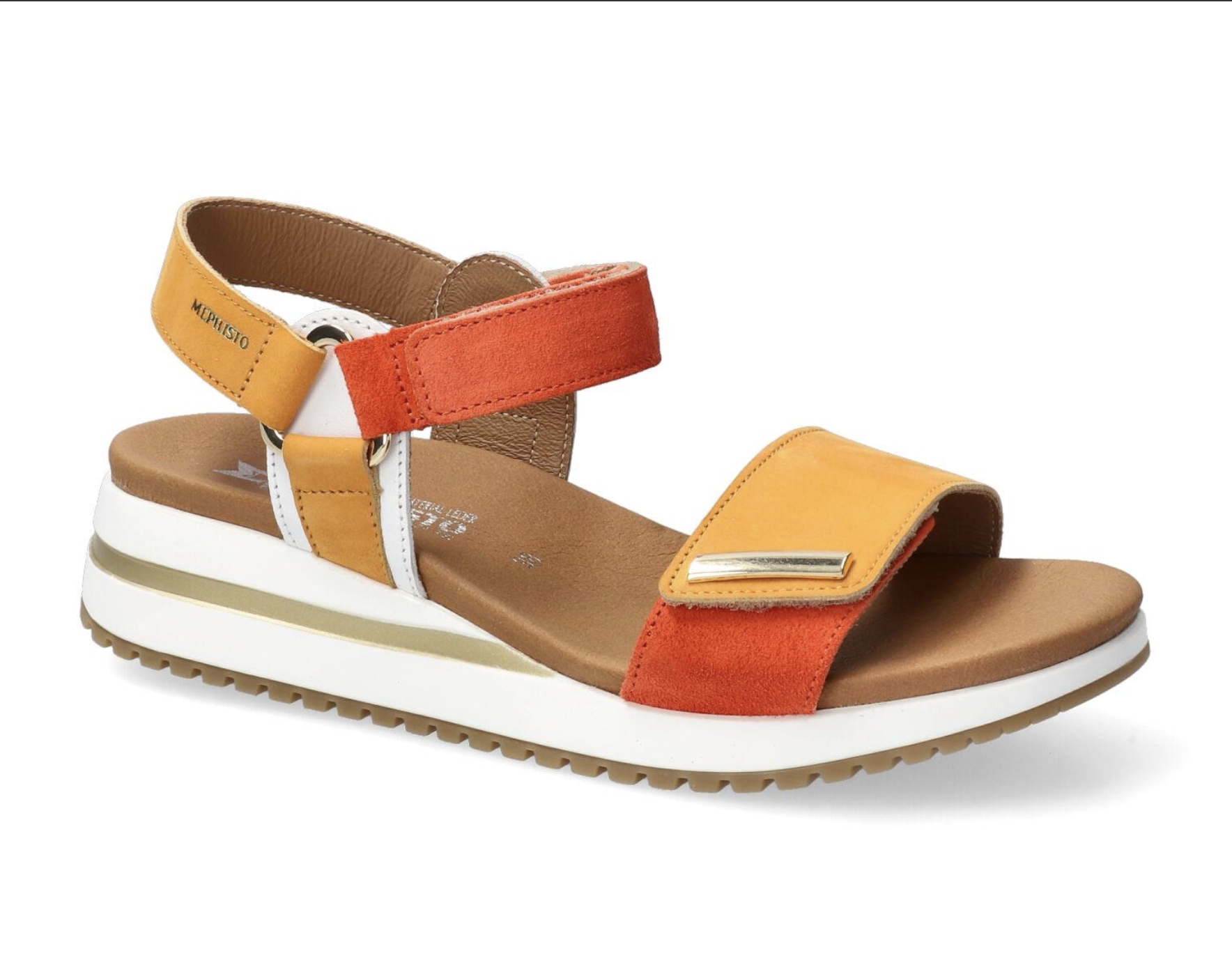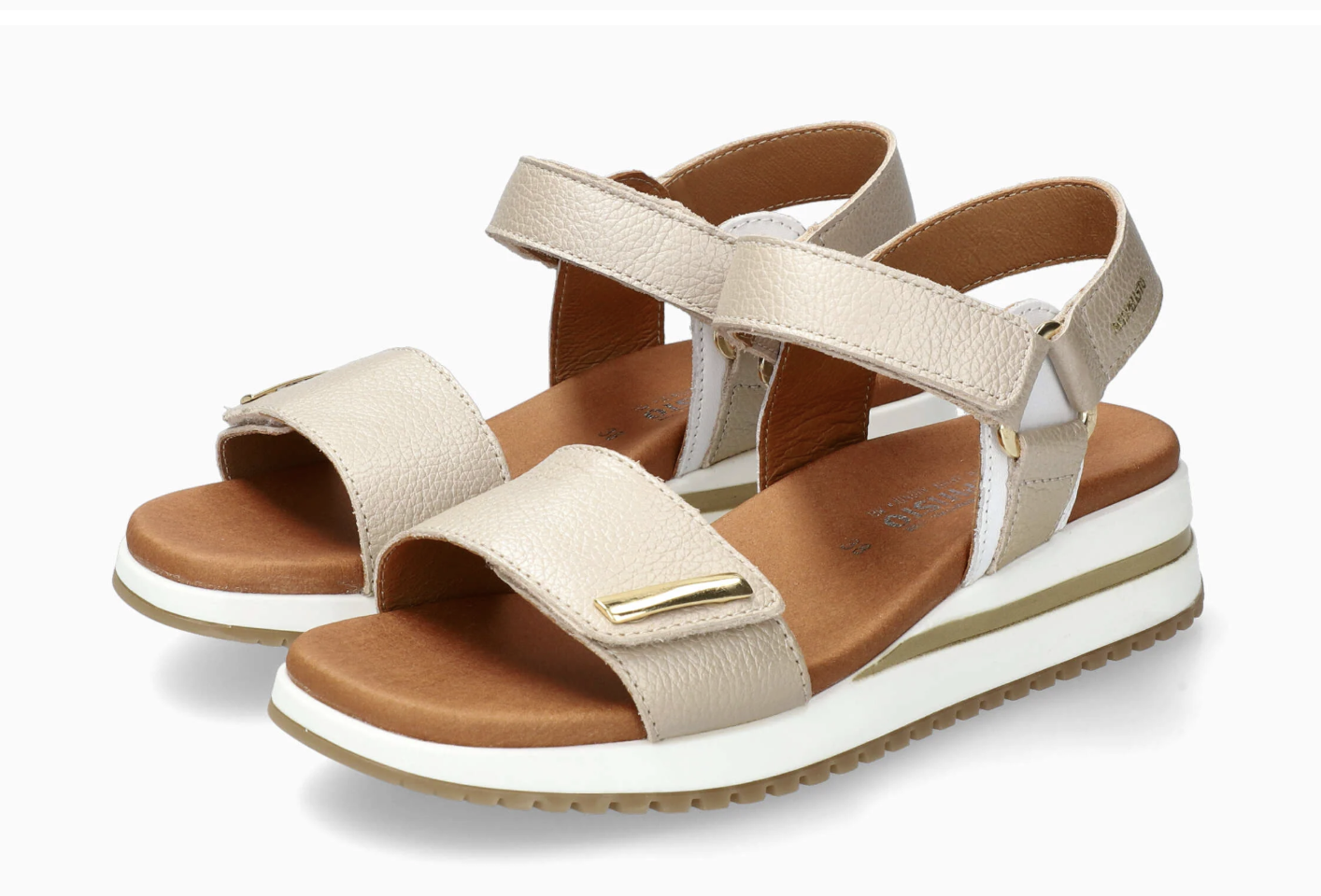 Dans un esprit sportif, cette sandale associe l'élégance et le confort. L'intercalaire SOFT-AIR, ainsi que le SHOCK-ABSORBER, contribuent à réduire les chocs au minimum pour une marche souple et sans fatigue. Avec la technologie AIR-RELAX, l'anatomie du pied est respectée afin d'éviter l'affaissement de la voûte plantaire. Cette sandale à brides avec bandes agrippantes est joliment décorée d'un ornement. La doublure en cuir offre un climat sain à l'intérieur de la chaussure. Ce modèle blanc pour femme est composé de cuir grainé lisse sur l'ensemble du pied et de cuir velours imprimé imitation animal sur les côtés du pied.