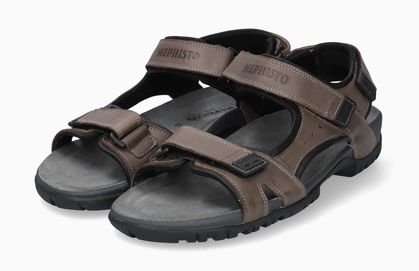 Cette sandale de marche, se distingue par son design sportif. L'intercalaire SOFT-AIR et le SHOCK-ABSORBER intégré dans la semelle extérieure, réduisent les chocs au minimum pour une marche souple et sans fatigue. La bride auto-agrippante sur le cou-de-pied permet un ajustement parfait à votre pied. Sa doublure respirante en textile affirme son look sportif. Ce modèle gris et noir pour homme est composé de cuir gras effet pull up sur l'ensemble du pied.