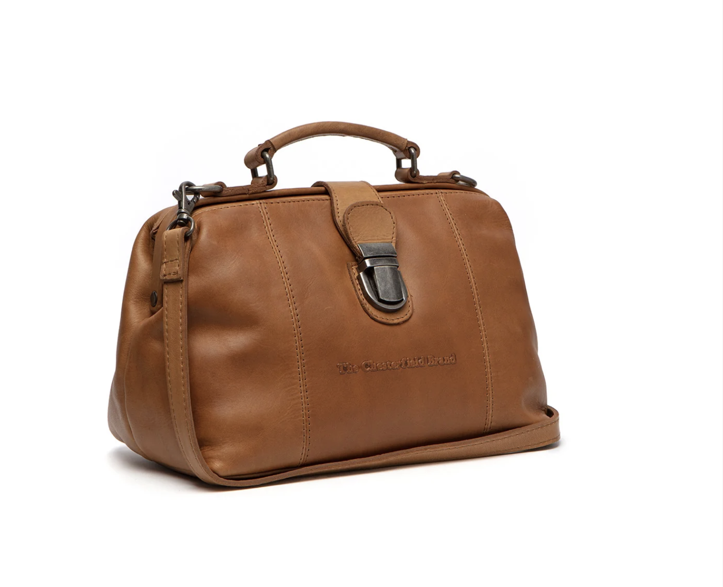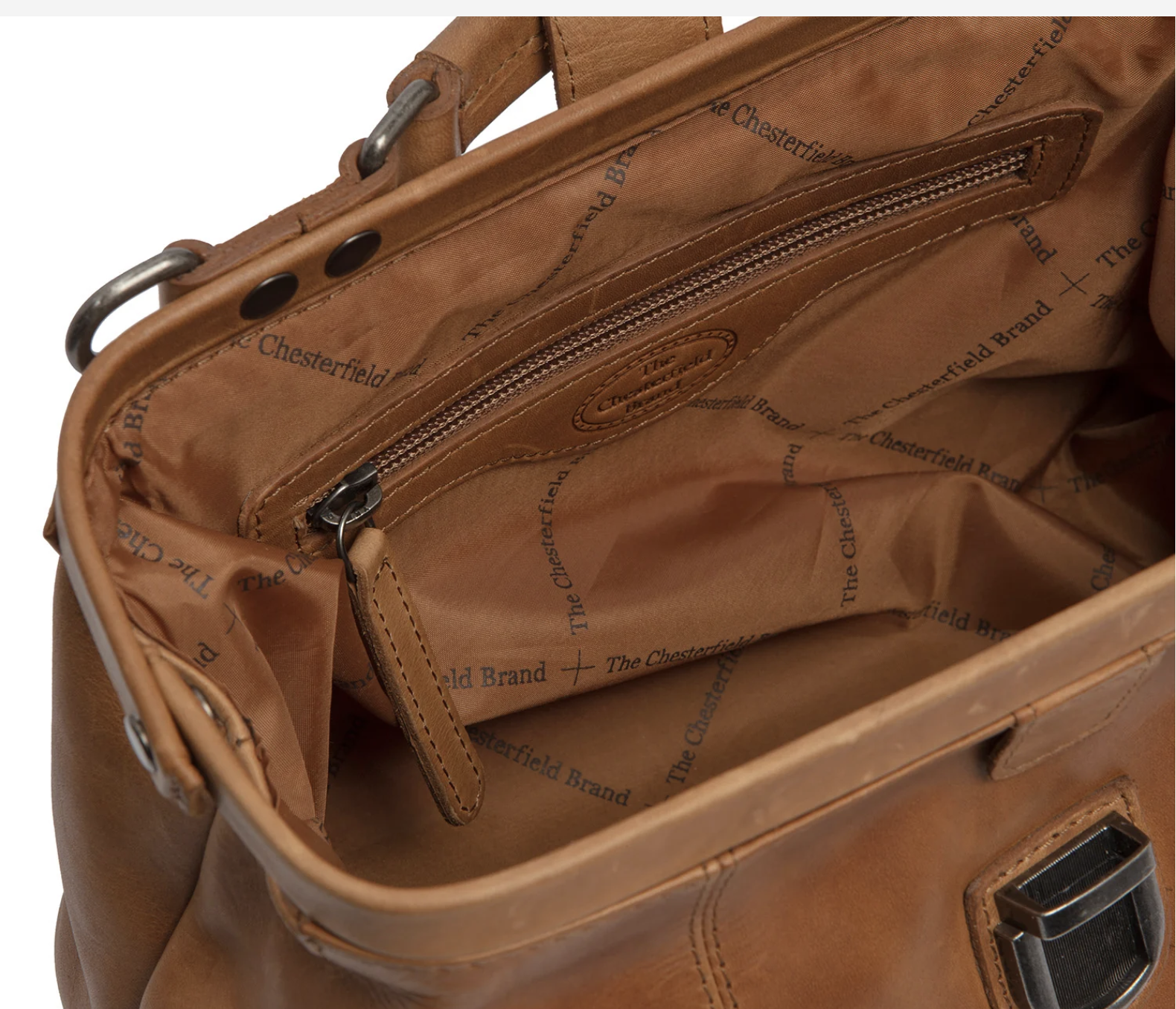 La fermeture peut être comparée à celle d'un sac de médecin classique. L'avantage de cette fermeture est qu'elle offre une large ouverture et reste ouverte après ouverture. Pratique pour chercher des lunettes ou des clés, par exemple. De plus, ce sac pour dames possède deux compartiments à fermeture éclair et une poignée en cuir.